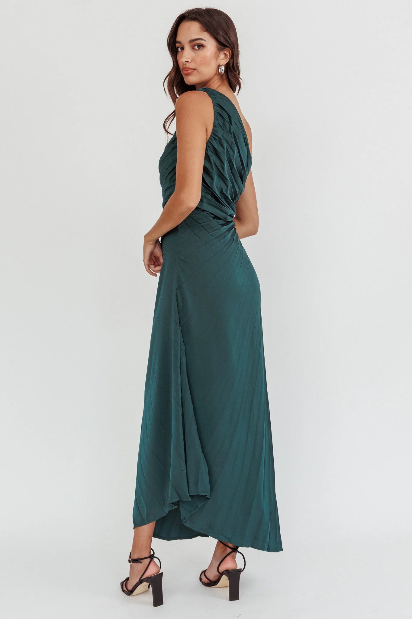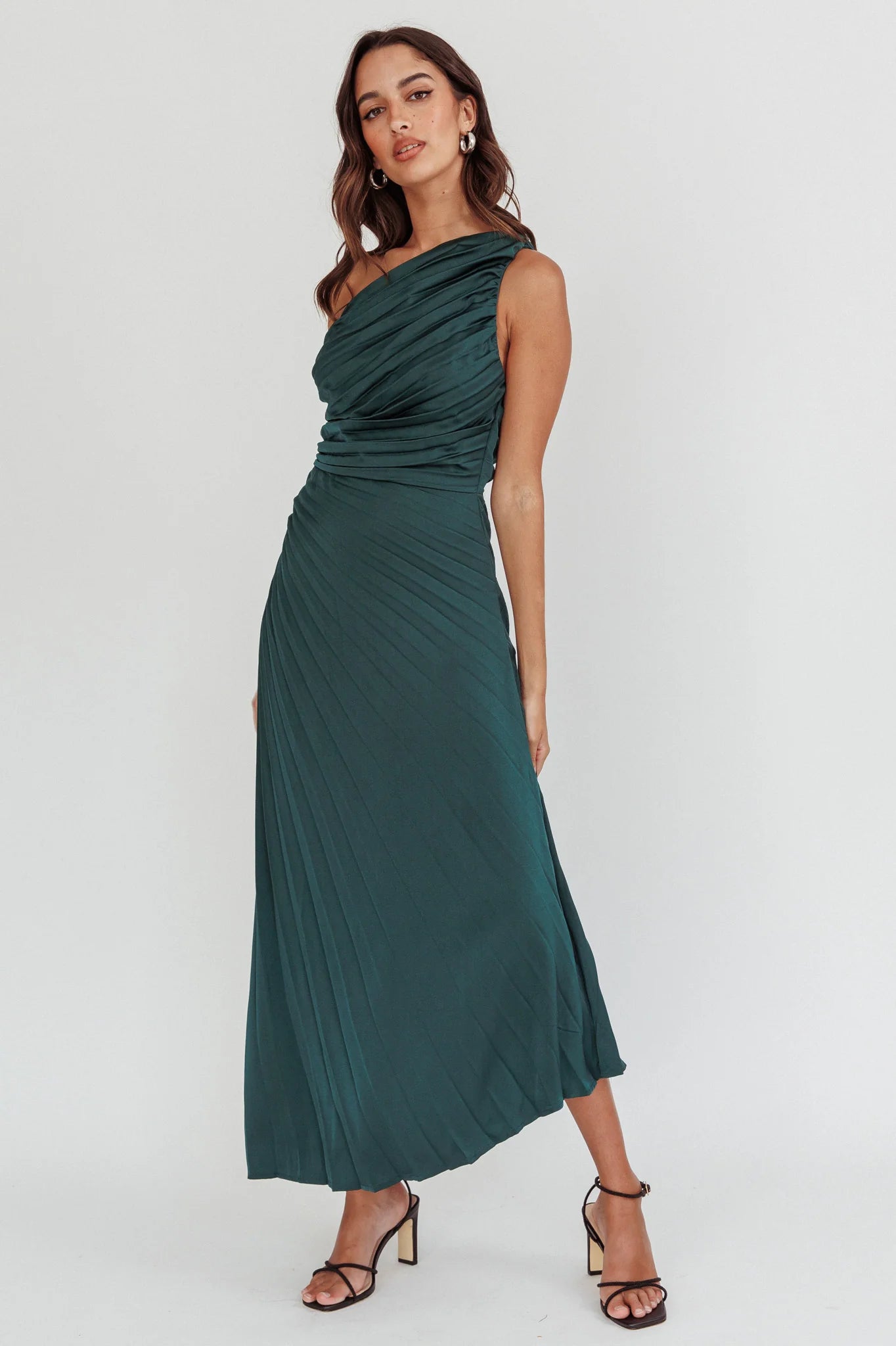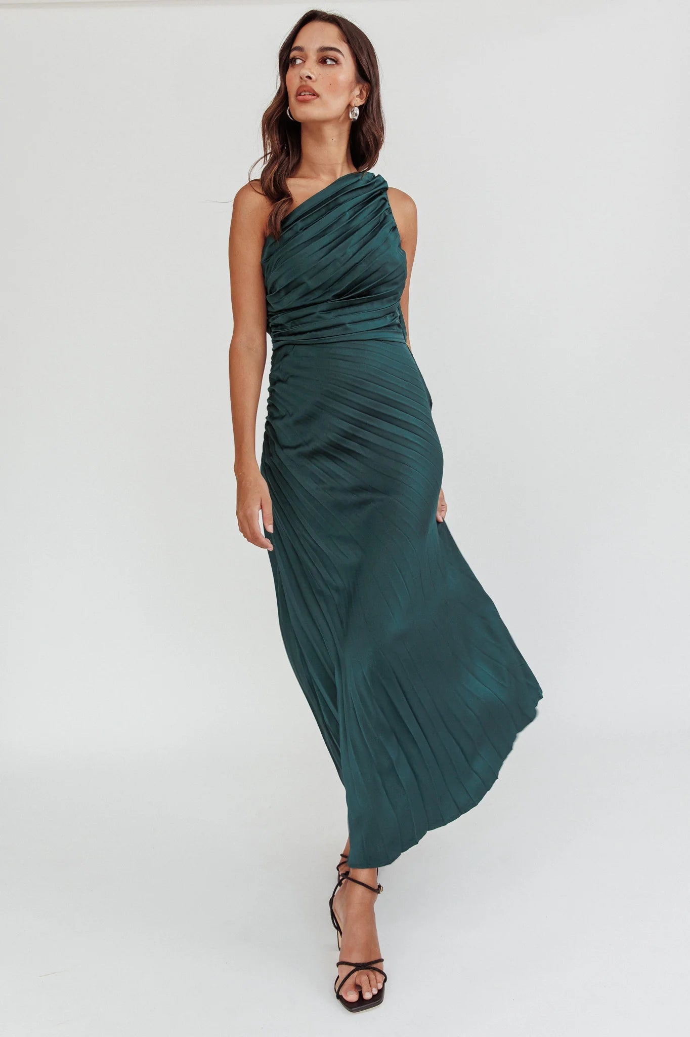 Make a grand entrance in our gorgeous Scarlett maxi dress. It features a pretty, one-shoulder design and accordion pleat detail throughout. Perfect for a wedding or a special celebration. Team it with nude, strappy heels and a clutch for a look that will turn heads.