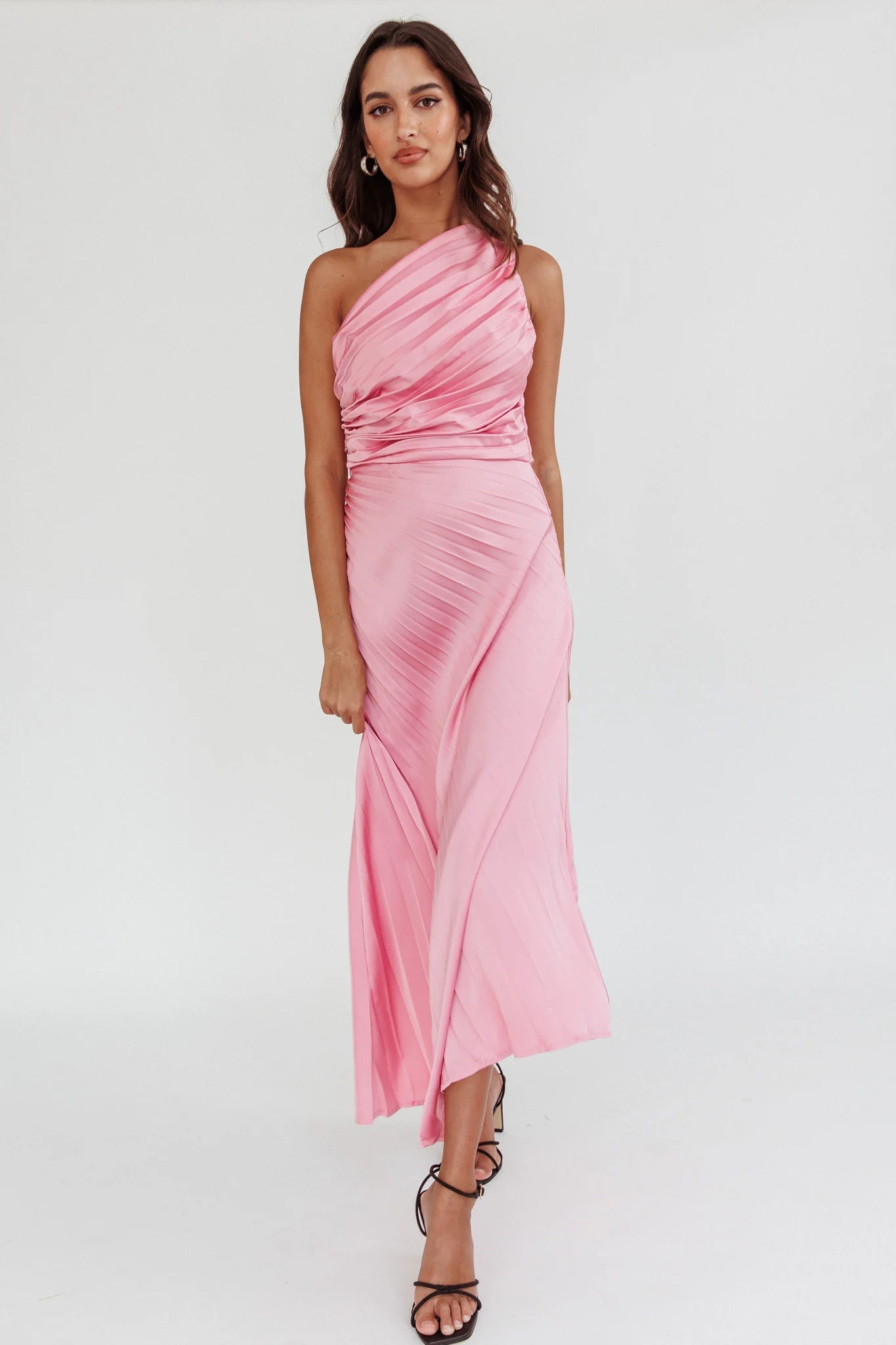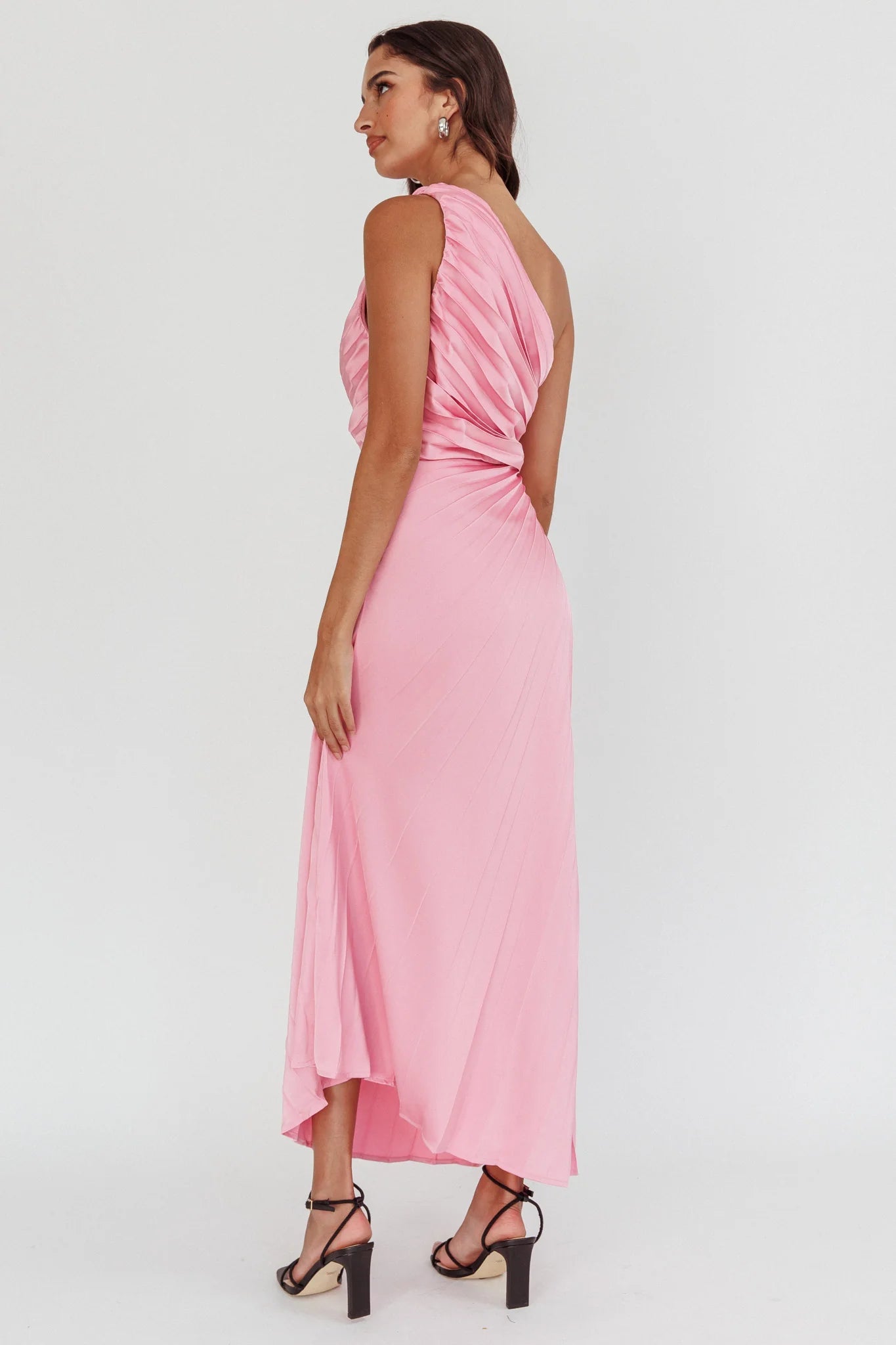 Make a grand entrance in our gorgeous Scarlett maxi dress. It features a pretty, one-shoulder design and accordion pleat detail throughout. Perfect for a wedding or a special celebration. Team it with nude, strappy heels and a clutch for a look that will turn heads.