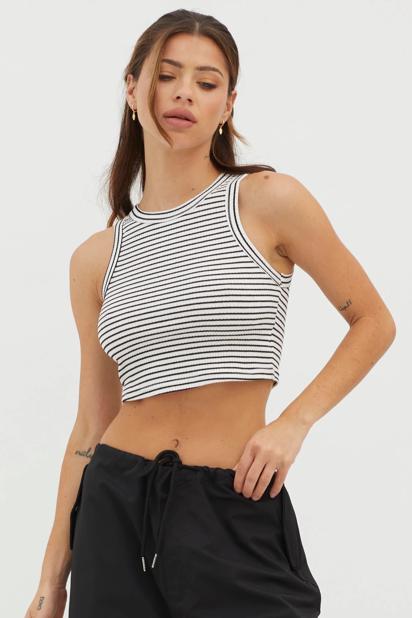 Get back to basics in our Seeker crop top. It's a must-have closet staple that's super versatile. Team it with mom jeans and sandals for coffee dates with your BFFs or dress it up with a satin midi skirt and kitten heels for a look we are loving.
