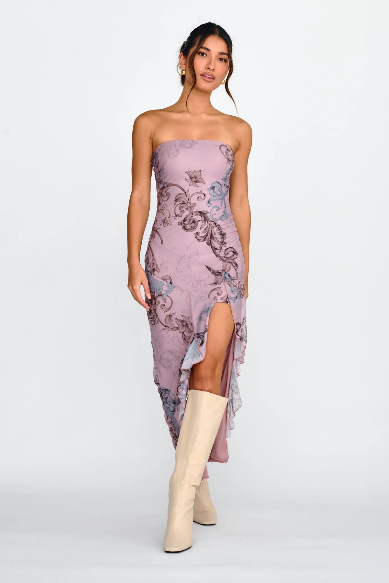 Steal the show in our gorgeous Shelby dress. We are head over heels for the ruffle trim split in the front and pretty, floral print. It's perfect for a birthday celebration or Friday night with your girls. Team it with strappy, tie-up heels and a saddle bag for a look that will turn heads.
