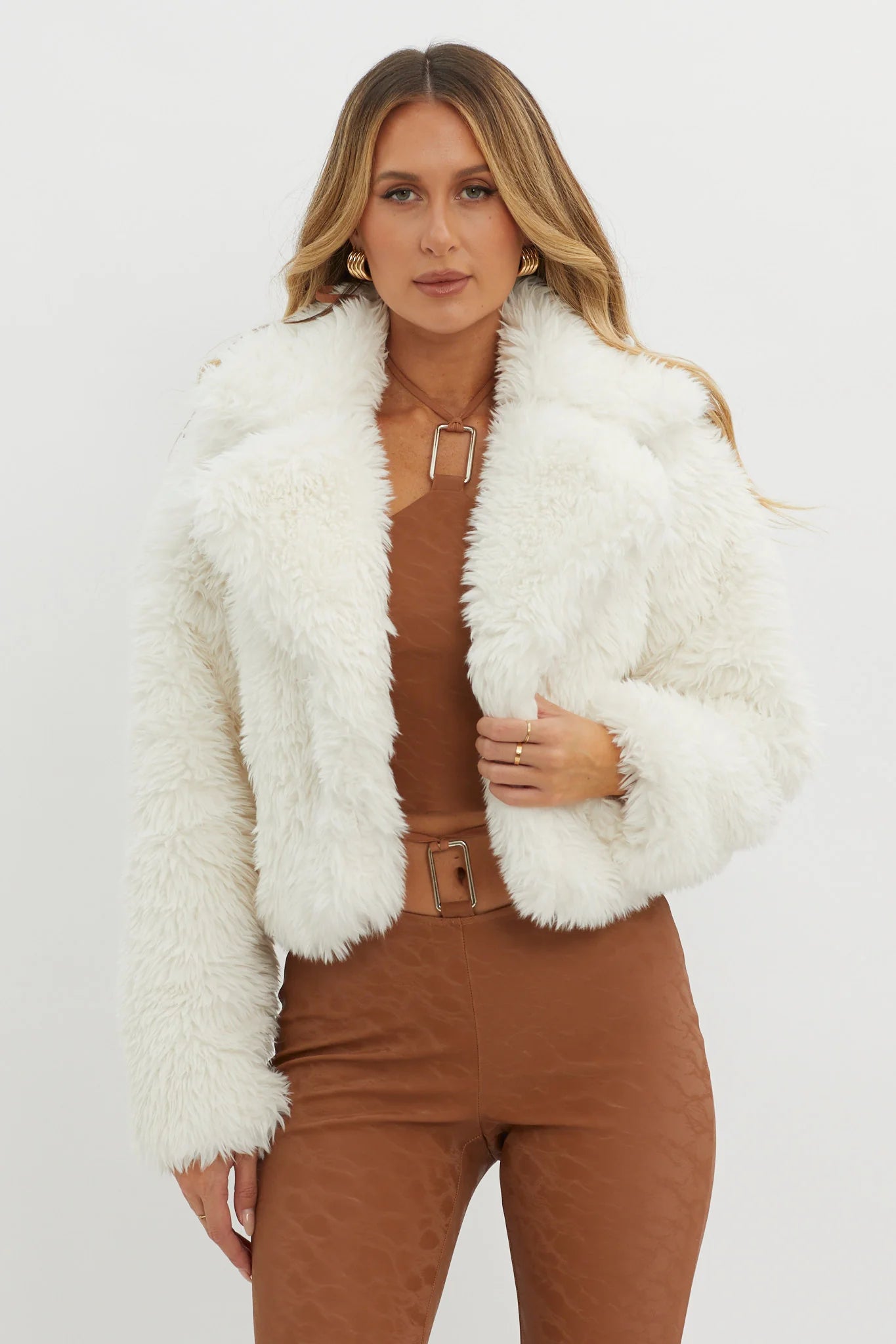 Cuddle weather is here and our St Moritz jacket is just what you need to cozy up and look chic while doing it. Featuring a super soft faux fur and a notch lapel, it's perfect for weekend dinner dates or coffee catch-ups with your girls. Team it with wide-leg jeans and a tee to elevate a cute, casual look.