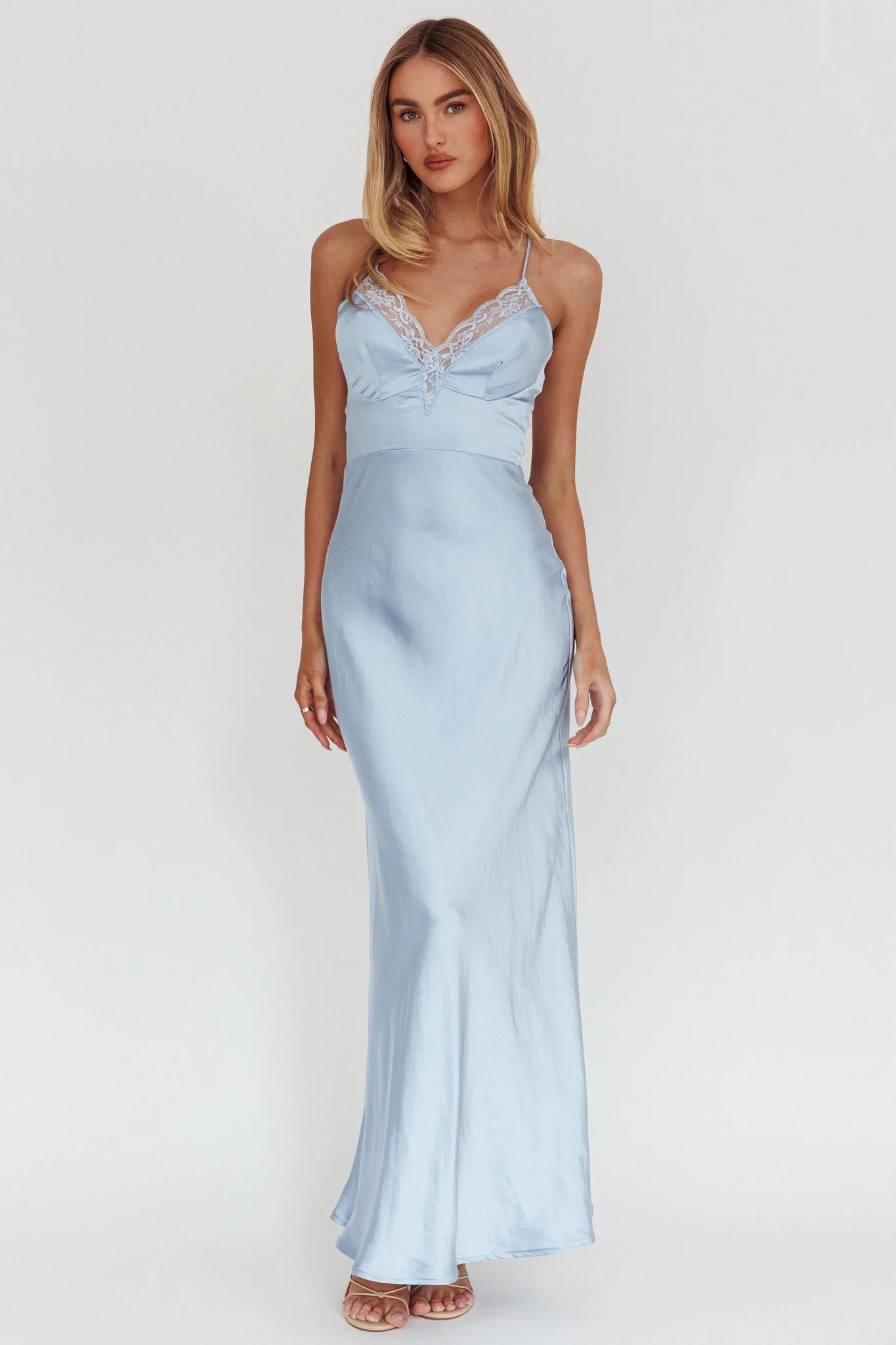 Make heads turn in our stunning Summer Of Love Maxi dress. It features a gorgeous satin fabric and a lace-trimmed neckline. It'd be gorgeous as a bridesmaid or wedding guest dress teamed with a satin clutch and strappy, nude heels for an unforgettable look.