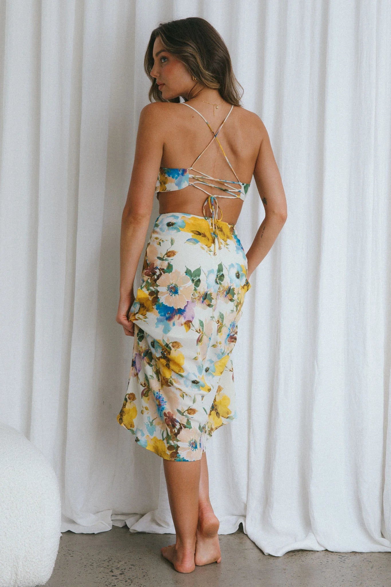 Chase your bliss in our dreamy Sunday Bliss dress. It's uber chic and just what you need for that weekend brunch date coming up. We are in love with its open, tie-up back and pretty floral print. Team it with kitten heels and a mini purse for an It Girl look we can't get enough of.
