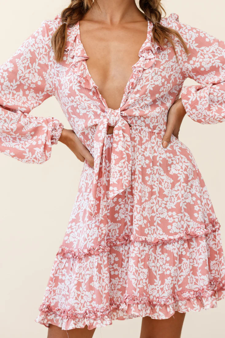 You'll feel like twirling through your day the moment you put on our Sunny Daze dress. Featuring a super sweet tie-knot bust and ruffle-trimmed neckline, this dress will get you flooded with compliments. It's perfect for sunny days strolling the farmers' markets teamed with riding boots and a felt hat.