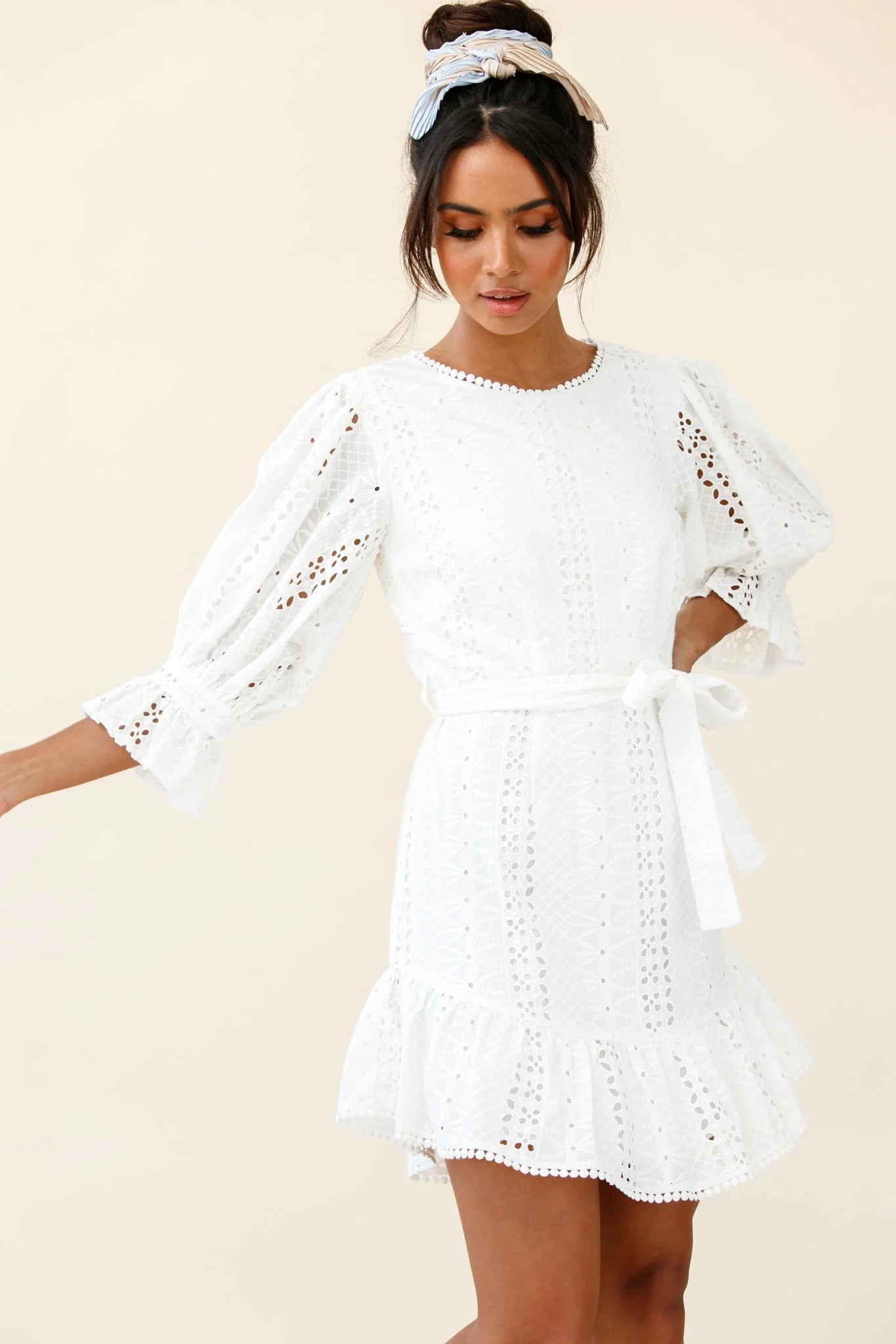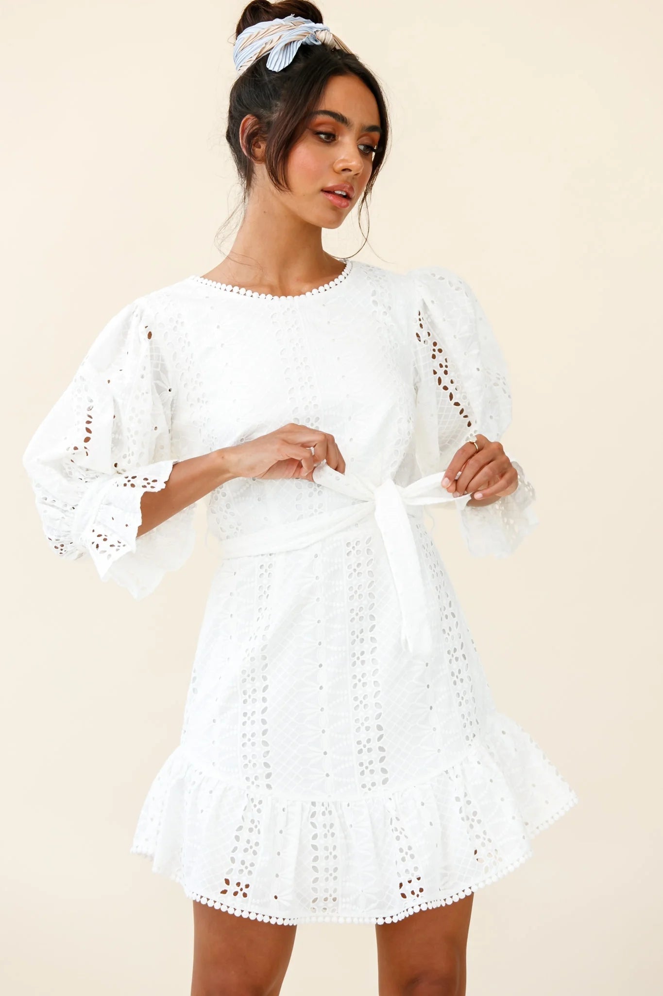 Sugar couldn't make you any sweeter in our Sweet Sunshine dress. Perfect for a bridal shower or champagne lunching with your favorite girls. We are obsessed with its pretty embroidery throughout and that cut-out back! Team it with nude heels and pearl accent jewelry for a feminine-chic look.