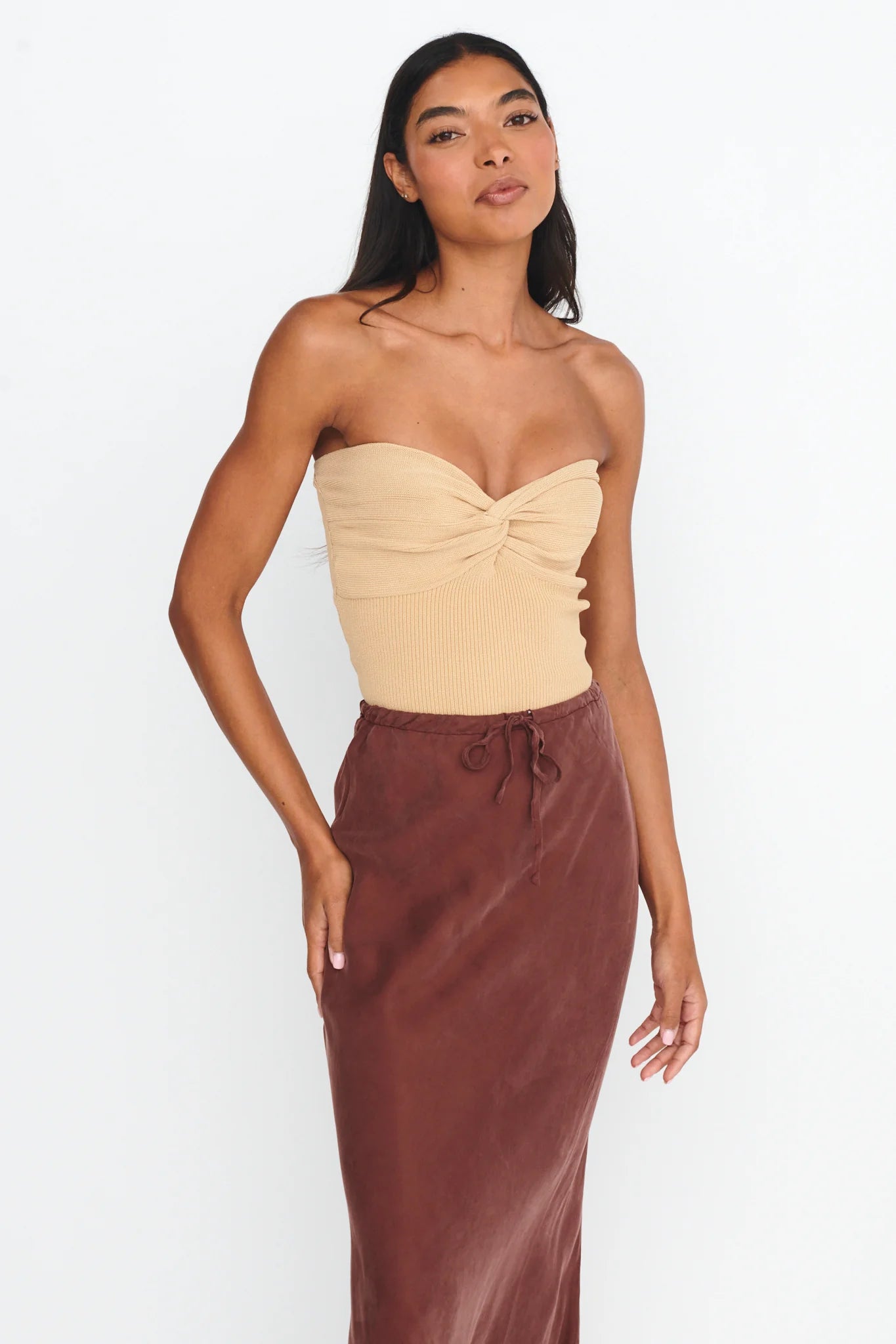 Go straight to the best-dressed list in our super chic Teagan top. We are obsessed with the twist feature in the bust and ribbed knit fabric. Perfect for your 9 to 5 or a girls' night teamed with our Dodie pants, kitten heels, and a baguette bag for a hot look.