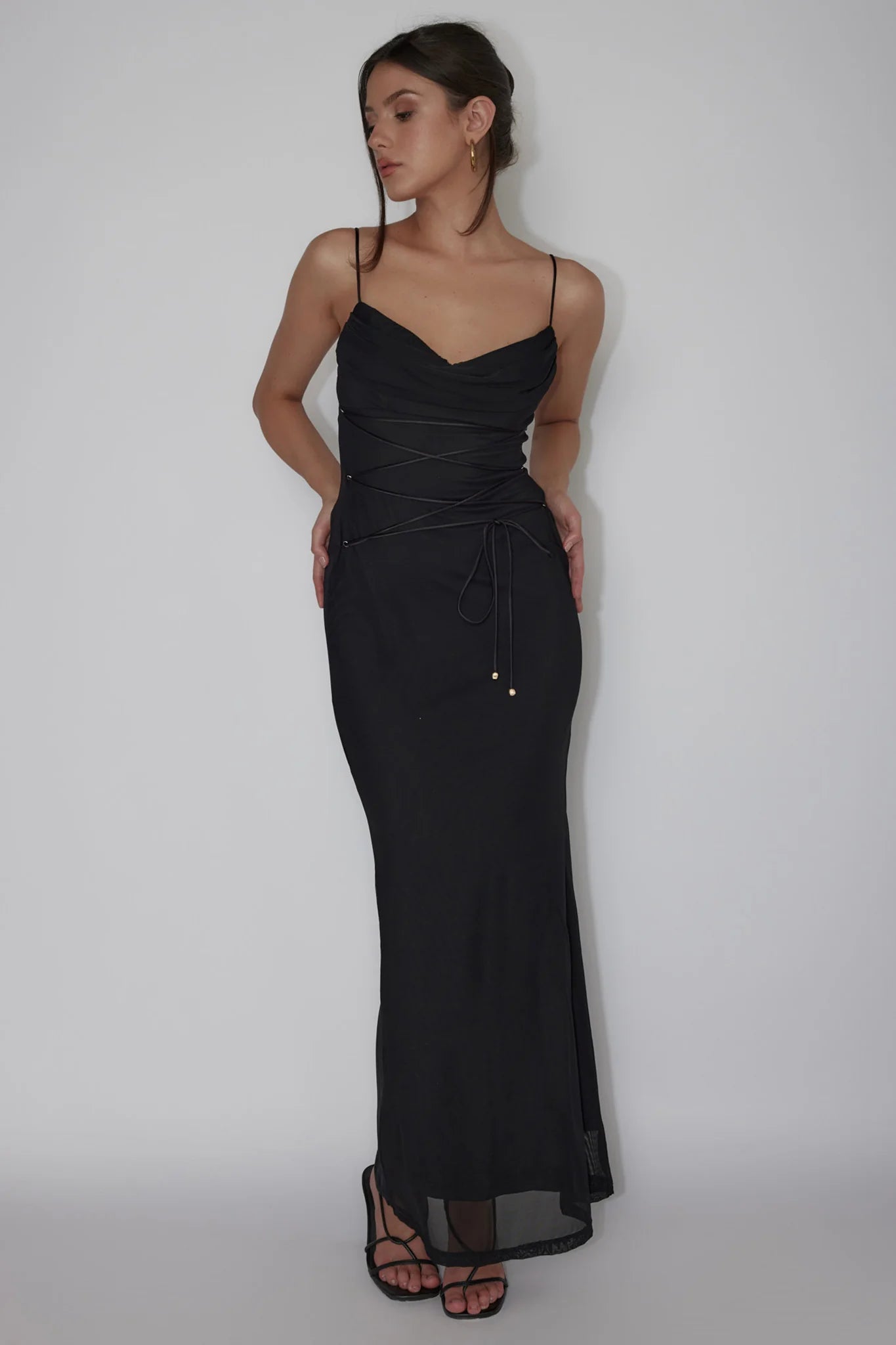 Turn heads in our gorgeous Teava maxi dress. We are in love with the lace-up detail in the waist. It's perfect for Friday night dinner and cocktails with your girls. Team it with black heels and a purse for a look that'll turn heads.
