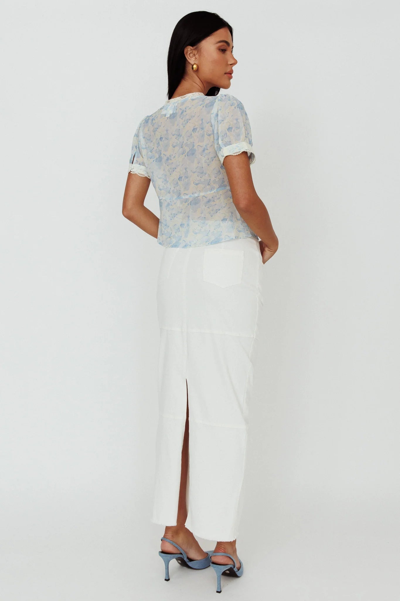 You'll go straight to the best-dressed list in our super cute Thalia maxi skirt. We are in love with its on-trend throwback style... and it has pockets! Perfect for going from desk to dinner teamed with a bodysuit and pointed-toe kitten heels.