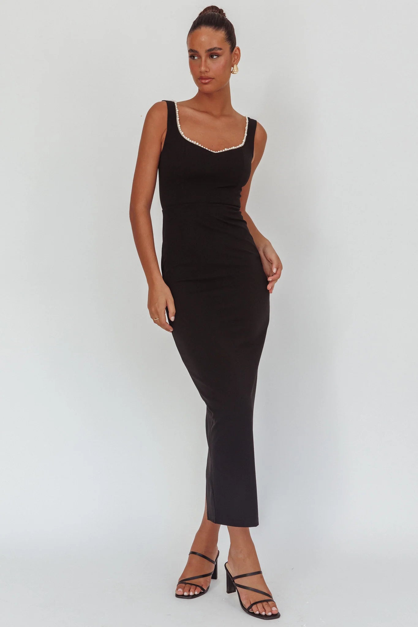 Make an entrance in our stunning This Magic Moment maxi dress. It features a pearl-trimmed neckline and a sophisticated silhouette. It's perfect for a wedding or special event. Team it with black stilettos and a satin clutch for an unforgettable look.