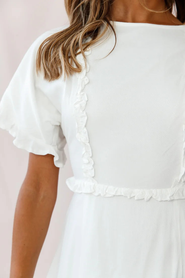 Turn heads in our versatile Thursday dress. Perfect for work or happy hour, this dress has got you covered. Partially lined, it features ruffle details, a flounce hem and our favorite part, the adorable lace-up back. Team it with nude pumps and a bright red lip for a look we are loving.