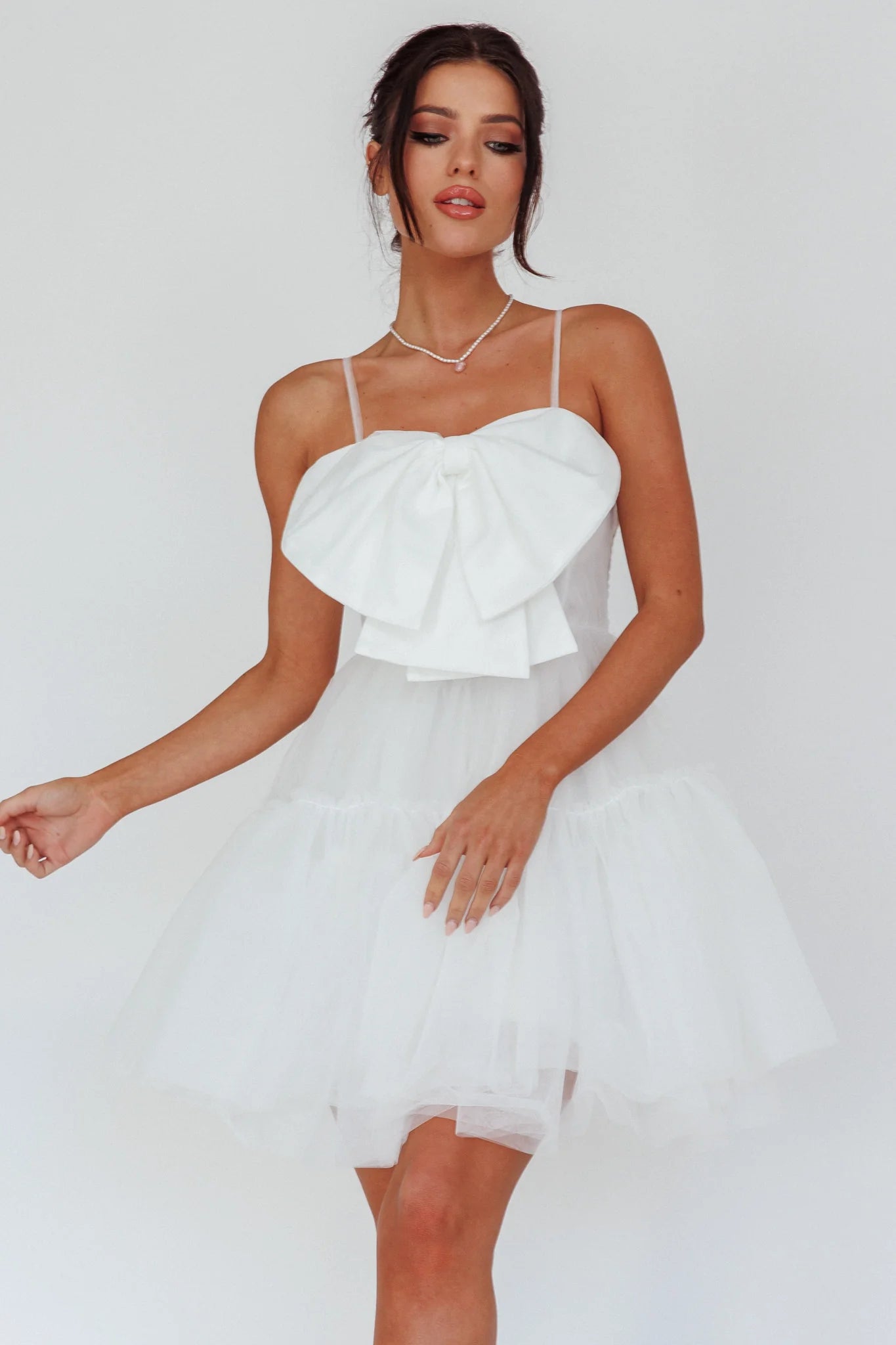 You'll feel like you're living a fairytale in our True Wish mini dress. We are obsessed with its oversized bow feature in the bust. Perfect for a bachelorette party or birthday soiree. Team it with strappy, white heels for a look we are in love with.