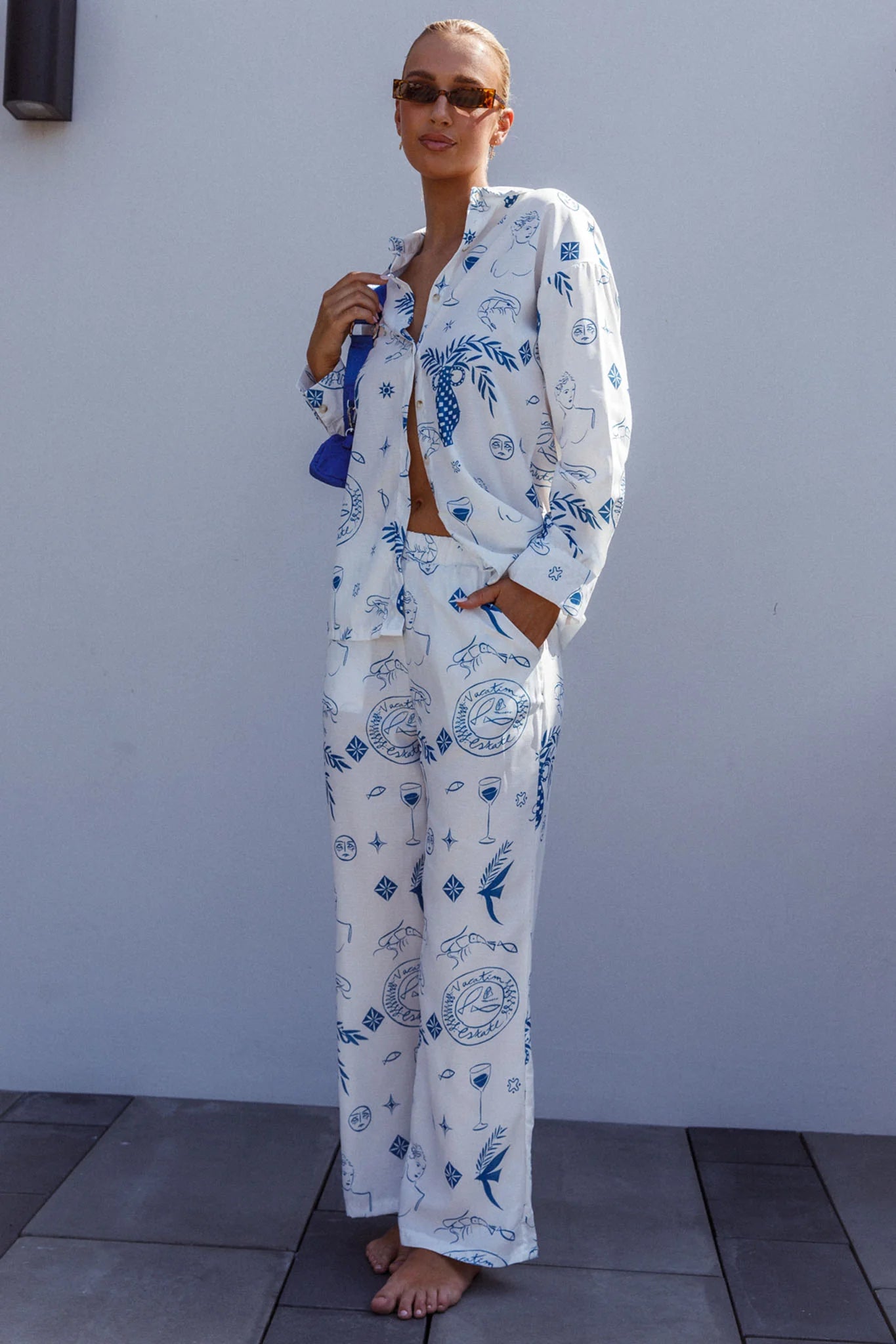Cruise through your Saturday in our Weekend Bliss pants. We are in love with their adorable print that's giving Euro-vacay vibes. Perfect for strolling the flea markets or coffee dates with your girls. Team them with a denim vest or their matching shirt for a cute look we are loving.