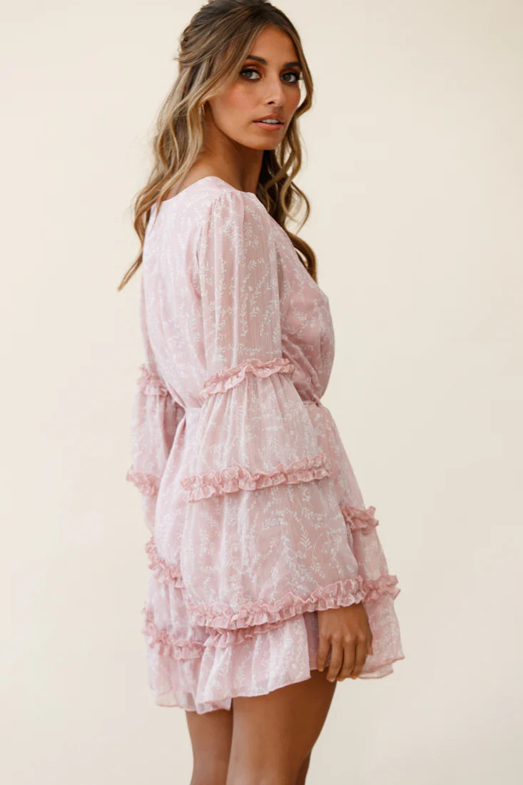 Fill your day with romance in our pretty Winslet dress. Featuring long, wide sleeves, a bust placket with self-covered buttons, waist tie and feminine frill detailing. We are obsessed with the floaty chiffon fabric. Perfect for a dreamy date night with bae, teamed with kitten heels and a pearl barrette in your locks.