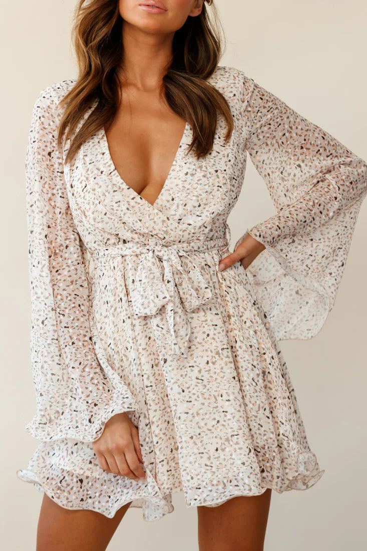 Chic and sweet, that's our Zinnia. Partially lined, it features long sleeves, surplice neckline, removable waist tie and a pretty lettuce edge finish on the cuffs and hem. Wear it for a special occasion or romantic dinner date, teamed with strappy heels.
